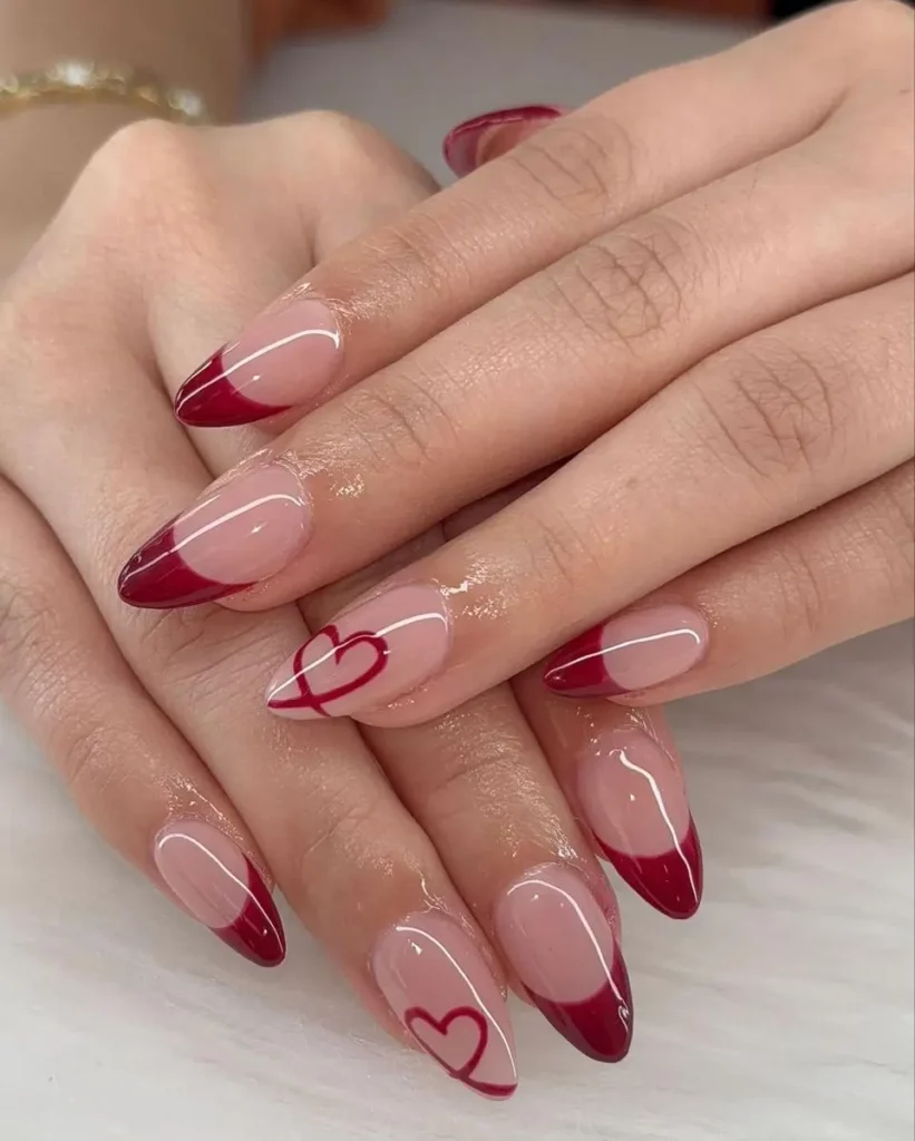 Épurée mais toujours efficace, elle est une valeur sûre pour la Saint-Valentin, notamment avec un vernis semi-permanent pour une tenue longue durée.