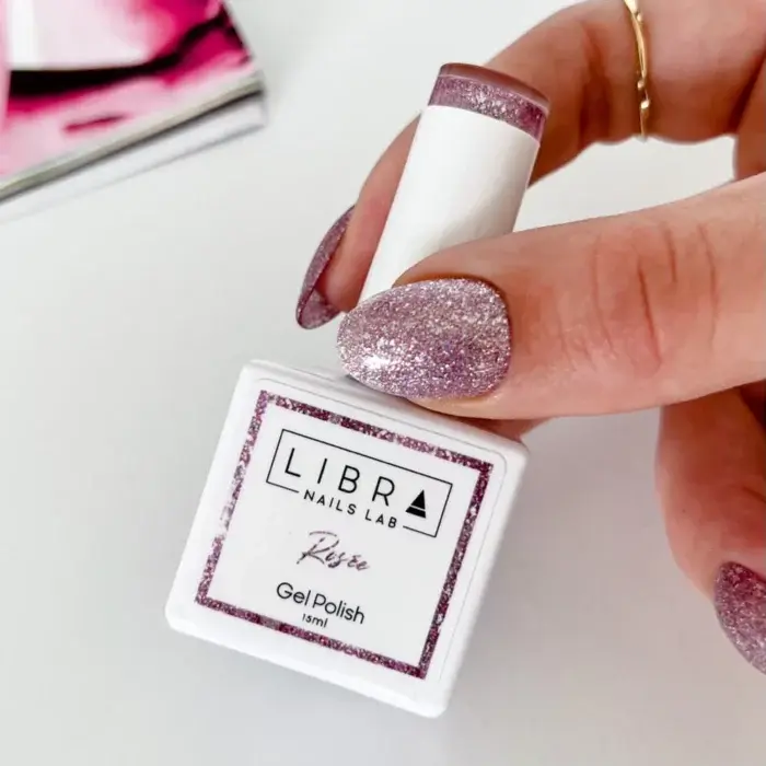 “Rosèe” est un Semi-permanent pailleté rose de 15ml.